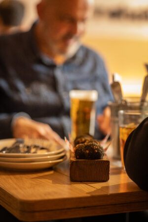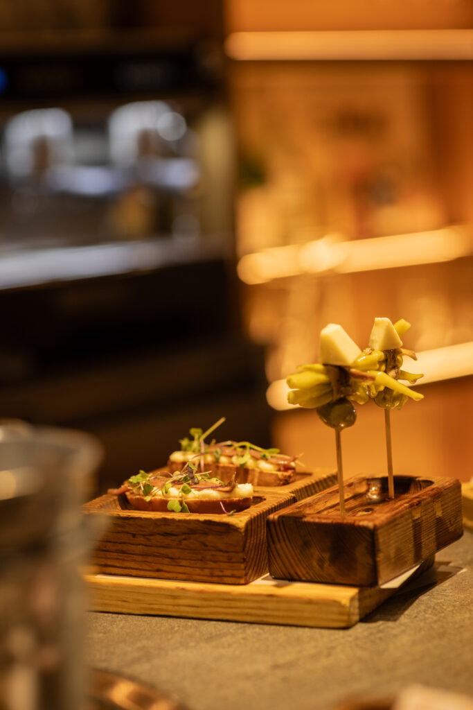 Luego llegaron las calles llenas. El poteo en Araba, el txikiteo en Bizkaia. Y claro… alguien pensó que aquello pedía un poco más de juego. Aparecen las banderillas, las tortillas. Se come de pie, rápido, de bar en bar. El rosario, como decían los primeros parroquianos.